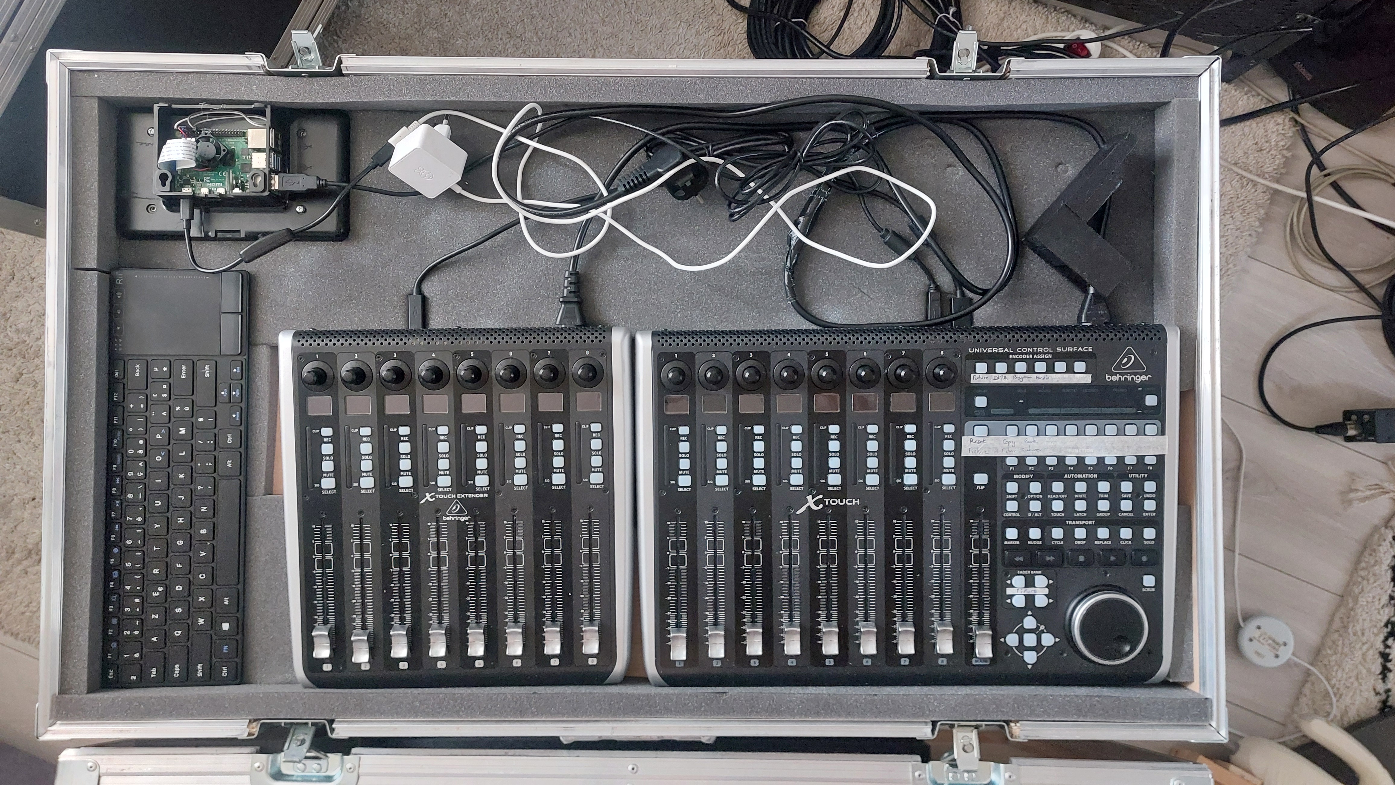 Projet visant à permettre de piloter les luminaires ainsi que la console son (Allen & Heath Qu-SB) depuis une surface de controle MIDI avec 16 + 1 faders motorisés (Behringer X-Touch + Extender)