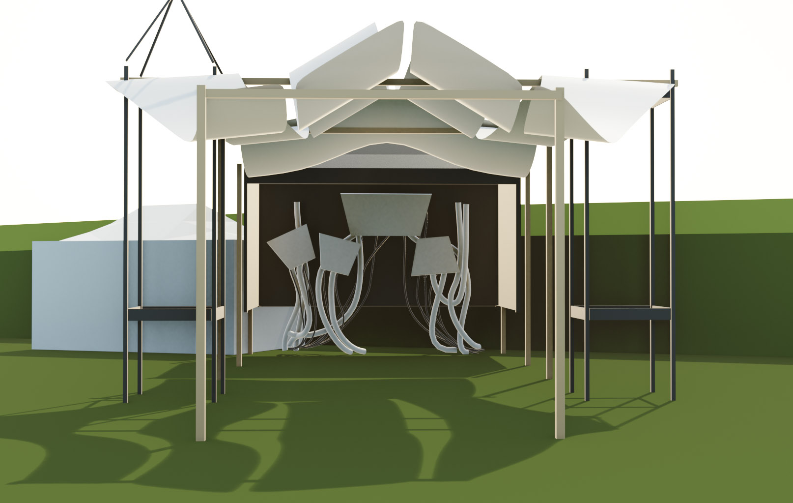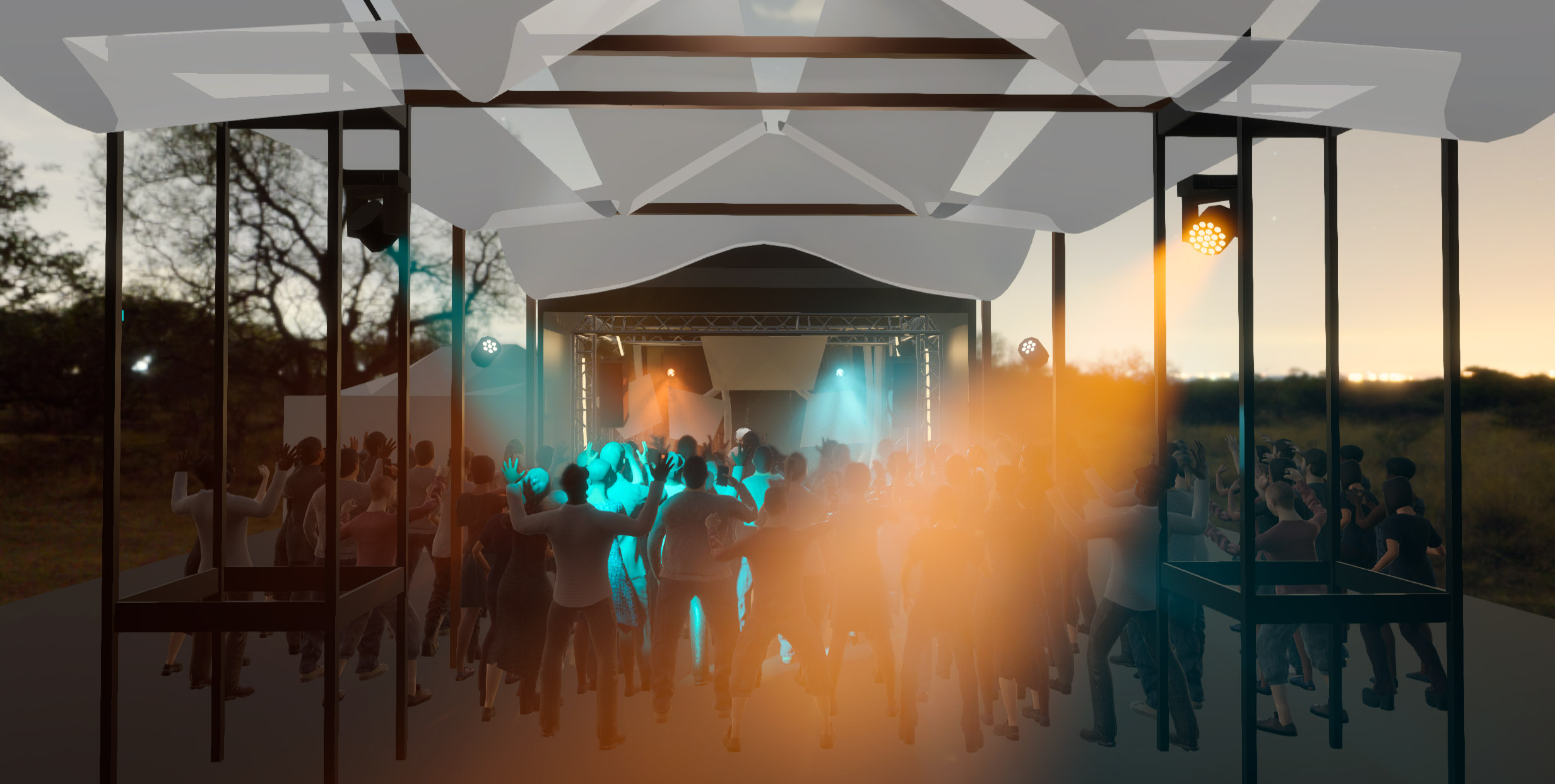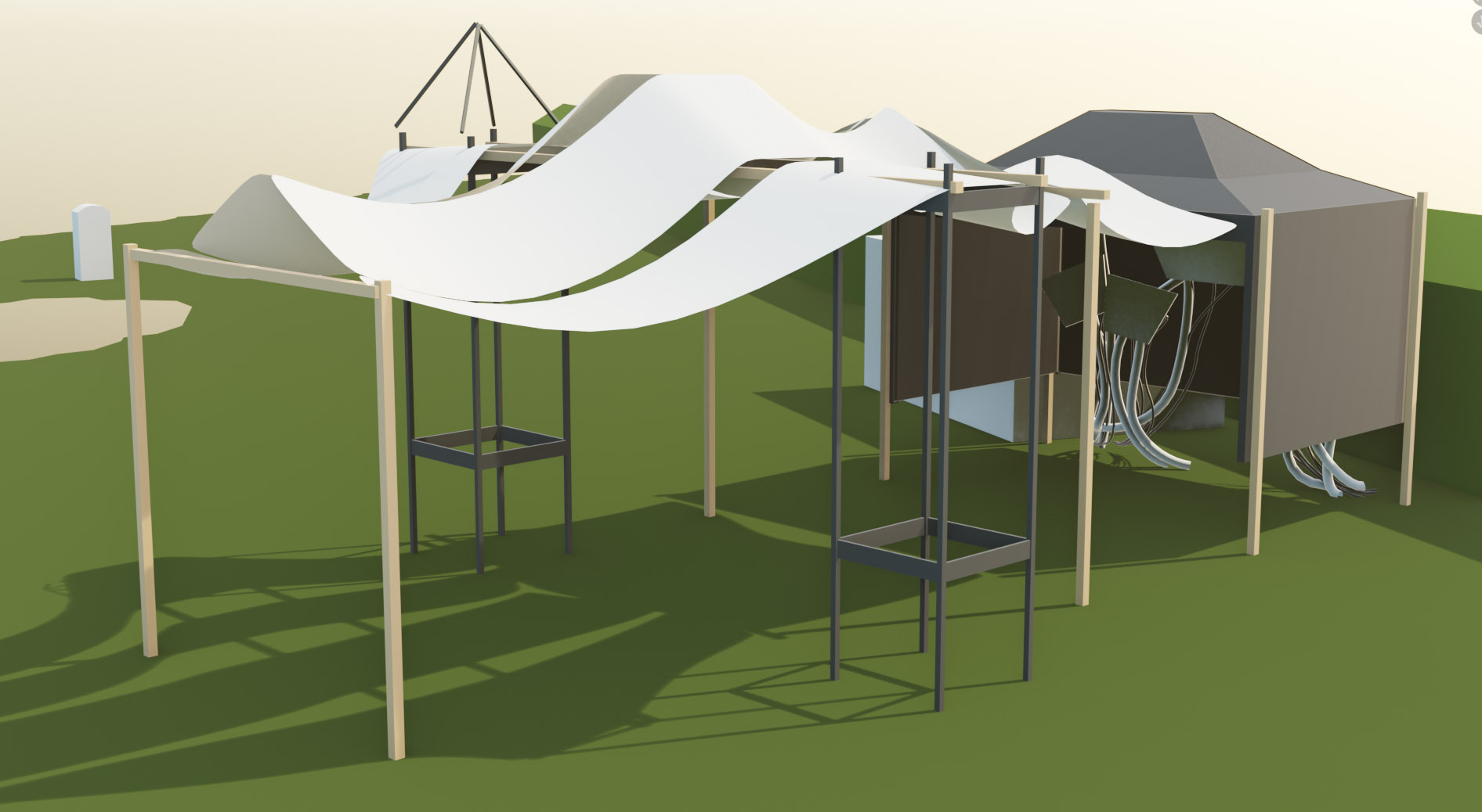 Afin d'organiser les 5 jours de montage du festival, des plans 3D sont réalisés dans une maquette virtuelle du lieu